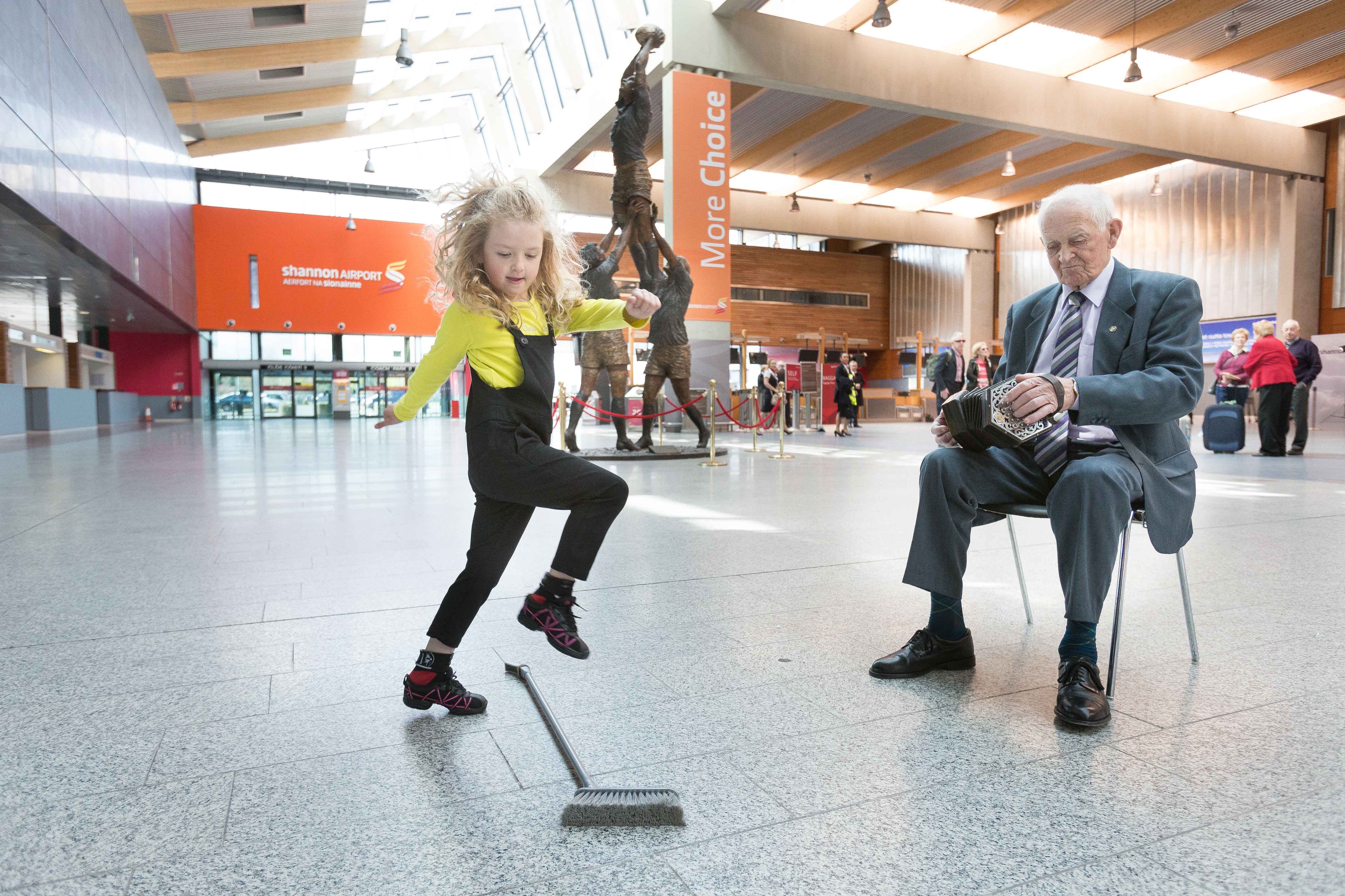The sponsorship was announced today at Shannon Airport, a company of the Shannon Group, in the company of three generations of the Droney family from Bellharbour in Clare, including 91 year old Chris Droney, who performed at that inaugural Ennis Fleadh 60 years ago. He was accompanied by his daughter Ann, a three times All-Ireland Concertina Champion and his granddaughter Ciara, a third generation concertina player.