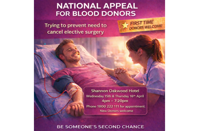 Appointments can be made by calling 1800 222 111. Existing donors also have the additional option of booking online at www.giveblood.ie. You can help ensure life-saving blood remains available for those in most urgent need.